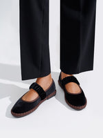 Estas bailarinas en terciopelo marrón con detalle fruncido aportan elegancia y comodidad a partes iguales.