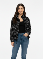 Su estampado de lunares en blanco y negro aporta ese toque femenino y alegre que transforma cualquier look.