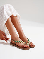 El detalle de piedras verdes con montura dorada es pura fantasía, y la suela cómoda hace que no te las quieras quitar.