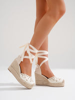 Comfortable and perfect with this esparto wedge with straps to tie to the leg or ankle, making a super flattering and pretty foot.