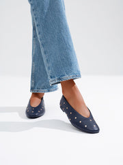 Con un tono azul profundo y decoradas con tachuelas metálicas que aportan brillo y carácter a cualquier look.