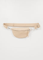 Bolsito beige con correa para poder llevar colgado como bandolera o adaptarlo como riñonera.